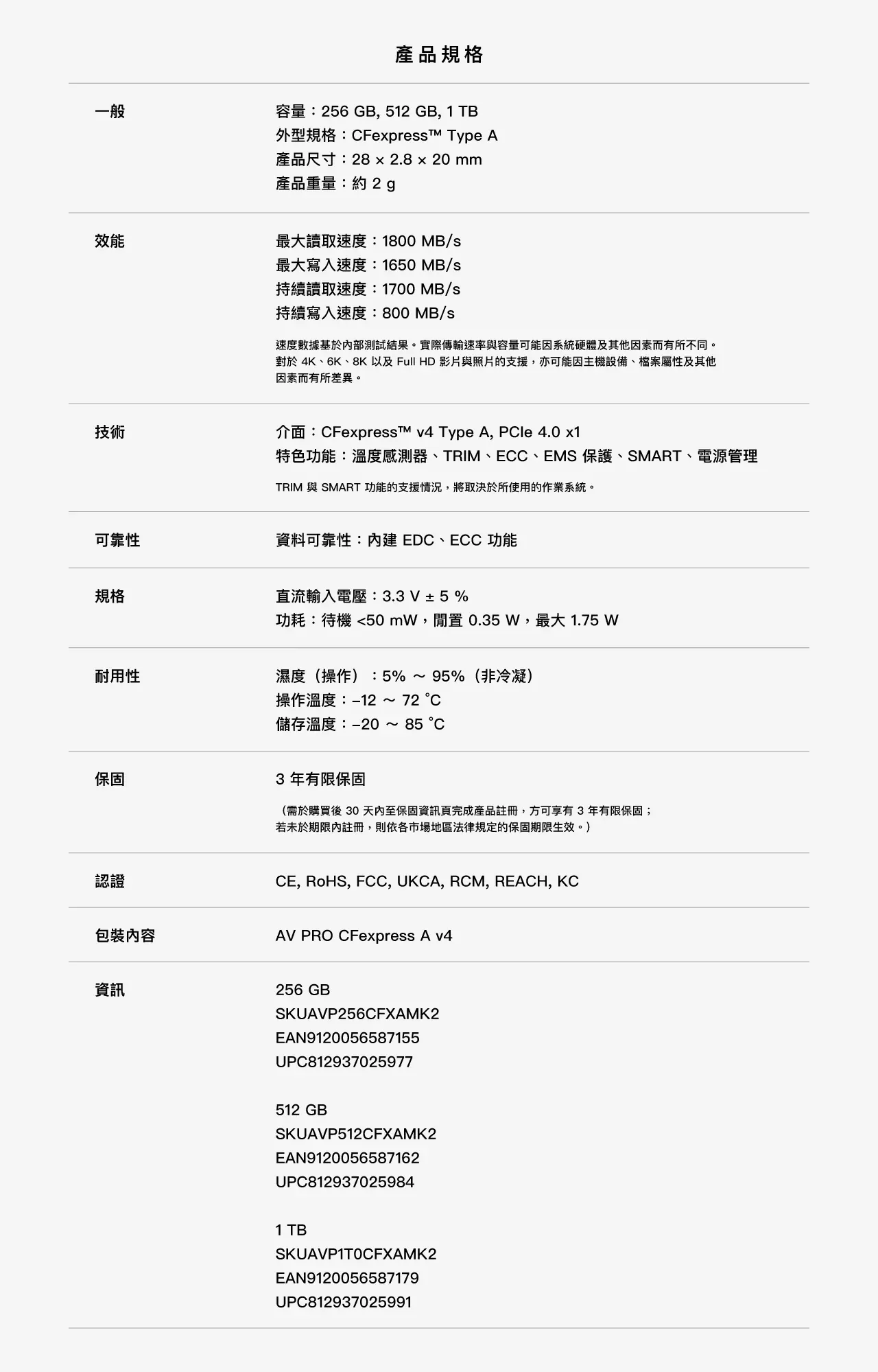 | 選項 | 1TB, 512GB, 256GB |
