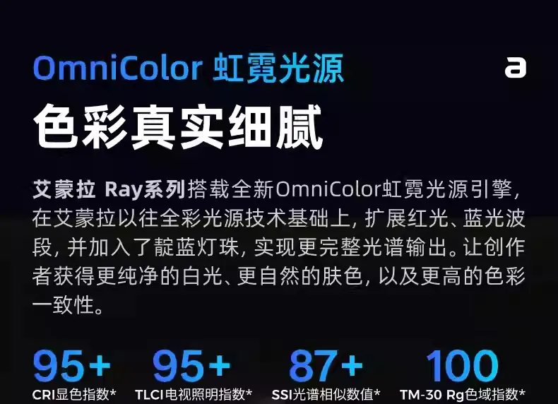 真彩 OmniColor 光引擎:色彩光譜更完整,提供更純淨的白光與更真實的膚色表現。