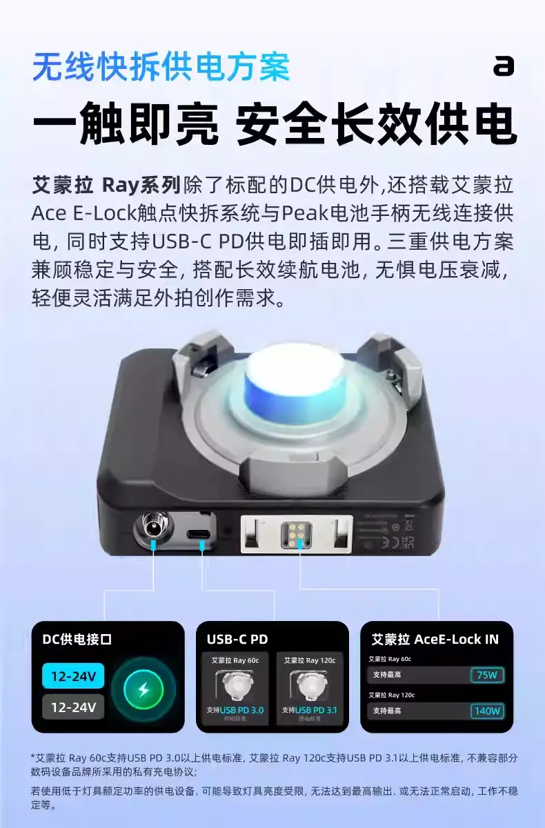 多元供電靈活性:支援 Ace E-Lock 快速接頭與 USB-C PD 3.0 行動電源,實現無線化作業。