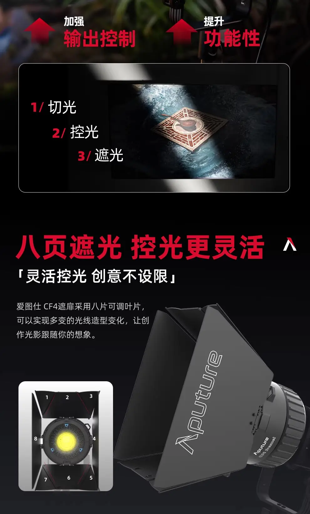 Aputure 愛圖仕 CF4 Fresnel 佛式透鏡 CF4 Barn Doors 八葉片 適 STORM 80c