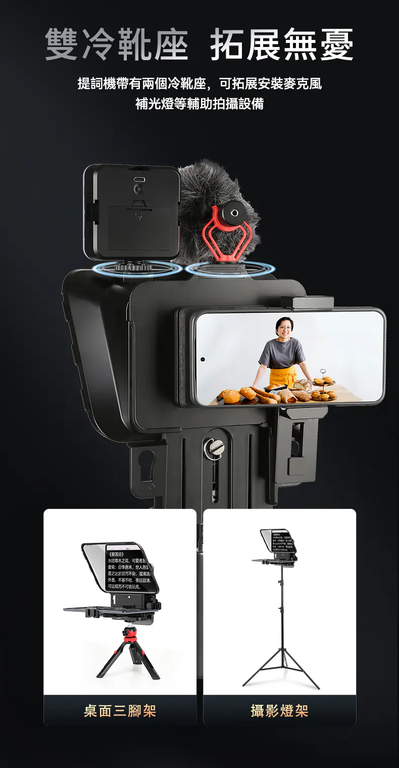支援橫拍與直拍,搭配雙冷靴座可外接麥克風、補光燈等配件