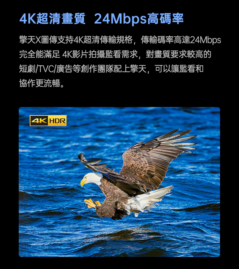影片格式:最高支援 HDMI 4Kp60 H.265 超高清 4K 和 24Mbps 高碼率