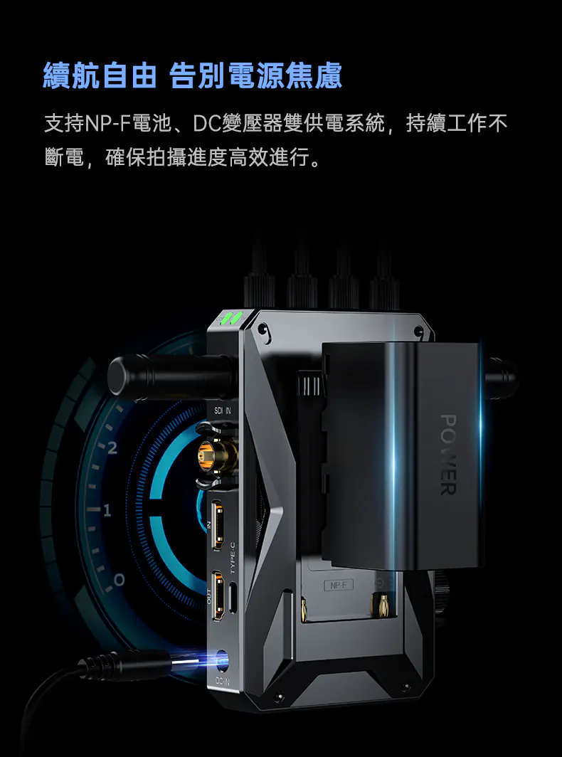 電源供應器:DC (7.4-24V) / NP-F (6.4-8.4V)
