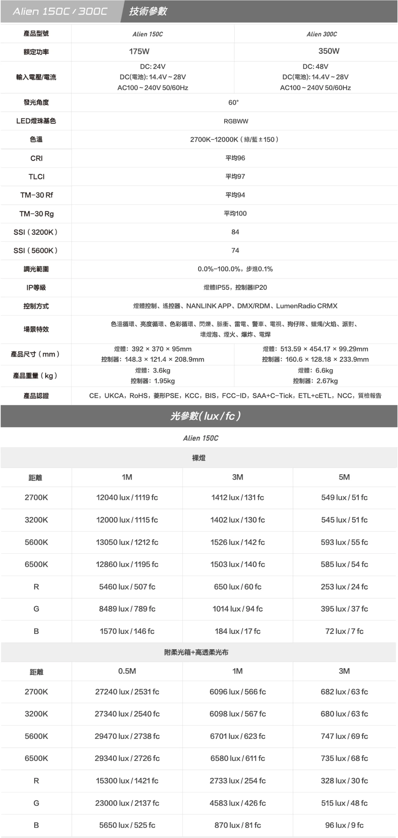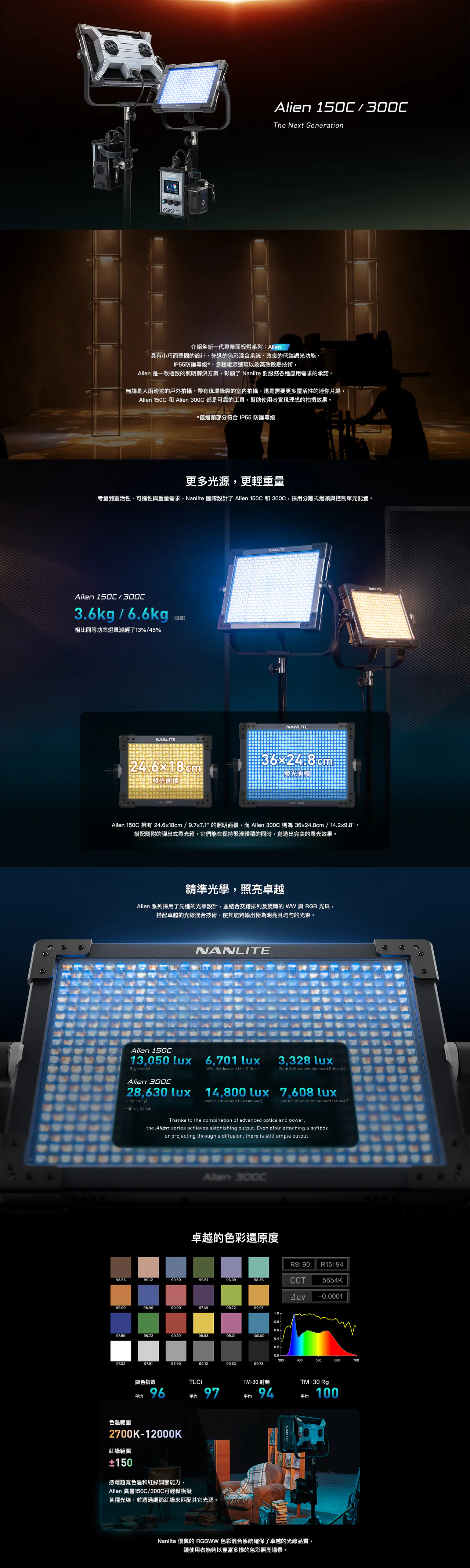 NANLITE Alien 150C/300C 輕型防水防塵專業級全彩板燈