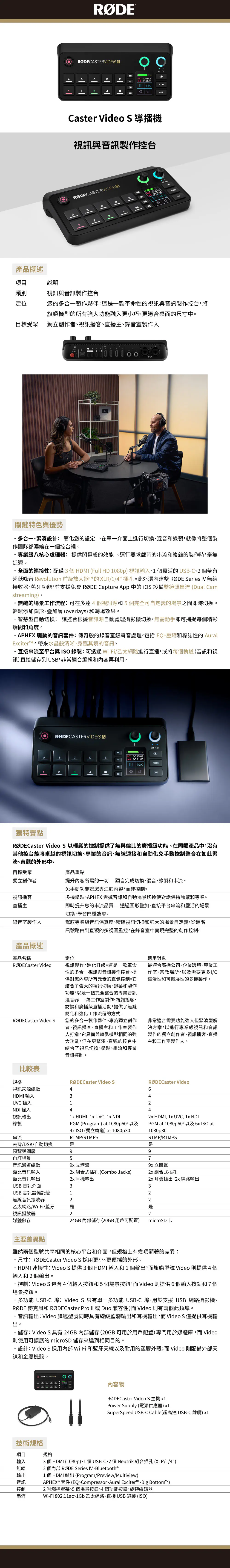 商城首頁 » Rode 收音設備 » RODE Caster Video S 導播機 🔍 RODE Caster Video S 導播機NT$36,900 RODE Caster Video S 導播機 數量 加入購物車 分類: Rode 收音設備 商品說明 額外資訊 商品性質 公司貨 售後服務 收到貨品後七日內如有瑕疵可接受退換貨,人為損壞恕不更換。 出貨時間 自結帳日起,如有現貨1-3天可送達,如需調貨最長需10-20個工作日寄達。 相關商品 RODE PODMIC 廣播級動圈式麥克風│可搭Caster Pro 直播用 NT$3,990 加入購物車 RODE TX-M2 Transmaitter 無線電容麥克風 NT$10,400 加入購物車 RODE VideoMic Rycote 電容式麥克風 NT$4,500 加入購物車 RODE Matched Pair 電容式麥克風 NT5MP NT$15,700 加入購物車