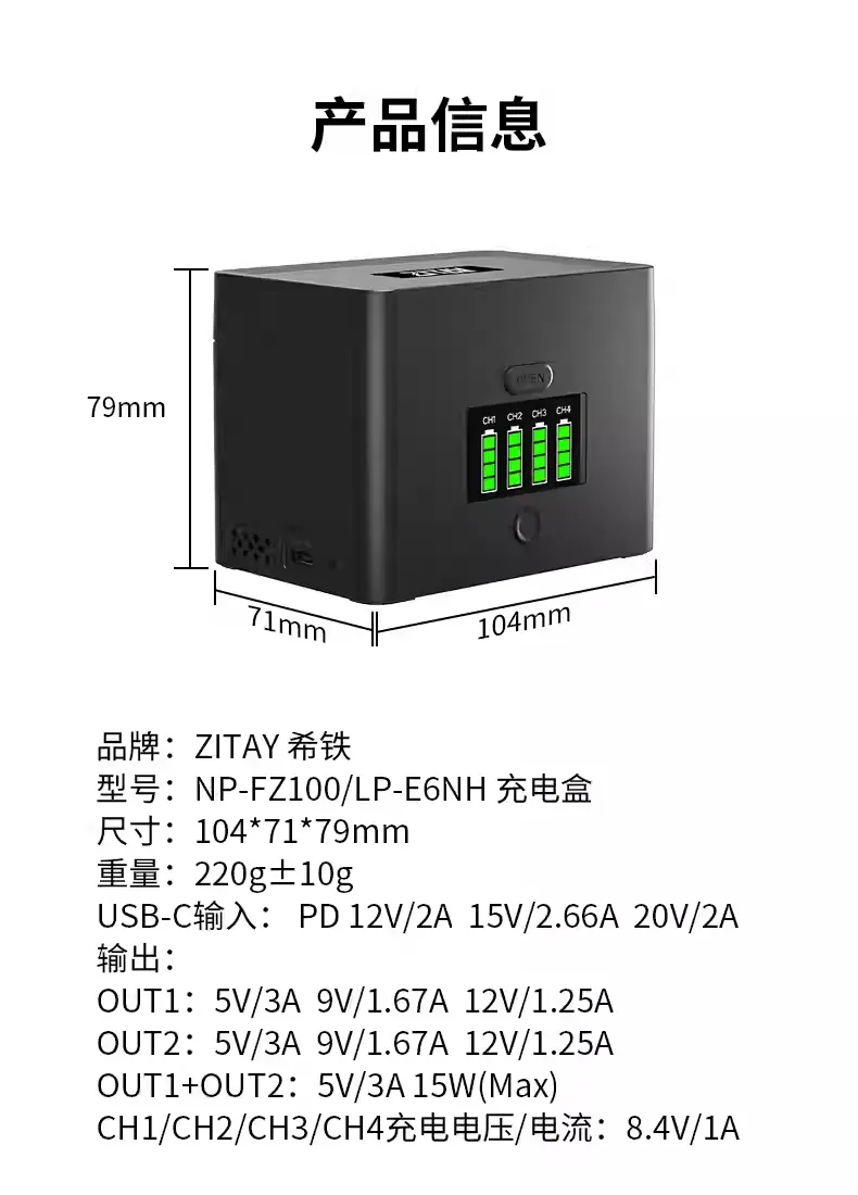 ZITAY LP-E6 / E6NH / E6P / NP-FZ100 相機電池快速充電盒 BC37/BC37KT
